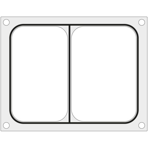 Wymienna matryca do zgrzewarki Bokama AG02E oraz AG02HD na tackę dwudzielną o wymiarach 227x178 mm, wykonana została z polerowanego aluminium. Dodatkowo posiada czarną silikonową uszczelkę, która ułatwia zgrzewanie tacek.