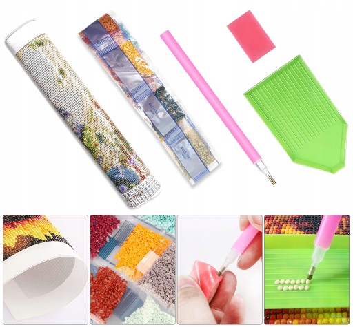 W zestawie diamond painting znajduje się wszystko, co niezbędne, by móc zając się tworzeniem swojego wyjątkowego dzieła.