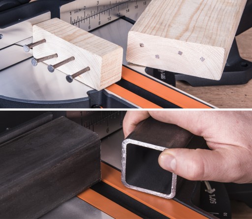 Urządzenie zapewnia możliwość cięcia materiałów o maksymalnym przekroju 210x56mm. Idealnie sprawdzi się podczas cięcia rur miedzianych i z tworzyw sztucznych, profili aluminiowych, płyt MDF, desek, listew przypodłogowych, twardego drewna jak jesion i dąb oraz wielu innych materiałów.