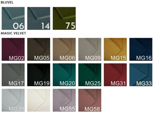 miękka i aksamitna w dotyku tkaniną tapicerską. Charakteryzuje się wysoką odpornością na ścieranie oraz mechacenie. Materiał łatwy do utrzymania w czystości, posiada atesty do użytku komercyjnego oraz OEKO-TEX