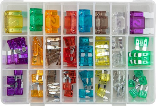 - Bezpieczniki w zestawie: Szerokość 19mm: 5 x 3A, 5 x 5A, 5 x 7.5A, 5 x 10A, 5 x 15A, 5 x 20A, 5 x 25A, 5 x 30A