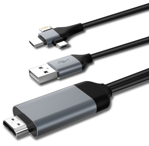 Wysokiej jakości kabel umożliwiający przesłanie sygnału z telefonu z systemem Android lub iOS (iPhone, iPad) na ekran. Za jego pomocą można wyświetlać na telewizorze filmy, YouTube, Instagram, Facebook, Chrome, Safari oraz inne pliki wideo oraz audio. W czasie oglądania treści nadal jest możliwa obsługa telefonu za pomocą jego wyświetlacza, dzięki czemu zapewnisz udostępniane treści oraz rozrywkę znajomym i rodzienie.