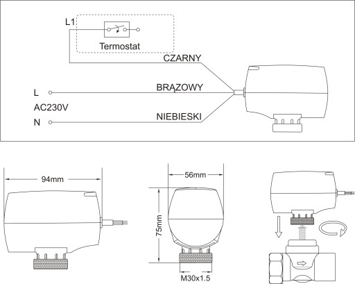 Zawór z siłownikiem z napędem elektrycznym 3/4", No: VDN202+ST10