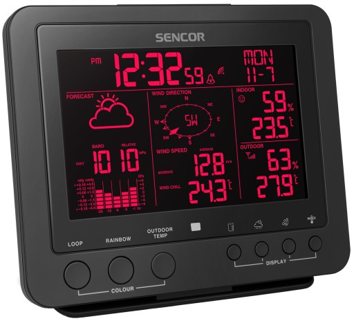 Stacja pogody wyposażona w podświetlany wyświetlacz 5.8 cala, wskazuje temperaturę wewnątrz i na zewnątrz pomieszczenia, wilgotność powietrza, ciśnienie oraz pogodę. Urządzenie świetnie sprawdzi się w każdym domu.