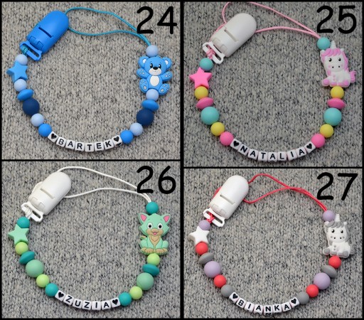 Na innej naszej aukcji, można również dokupić silikonowy gryzak w różnych wzorach i kolorach.