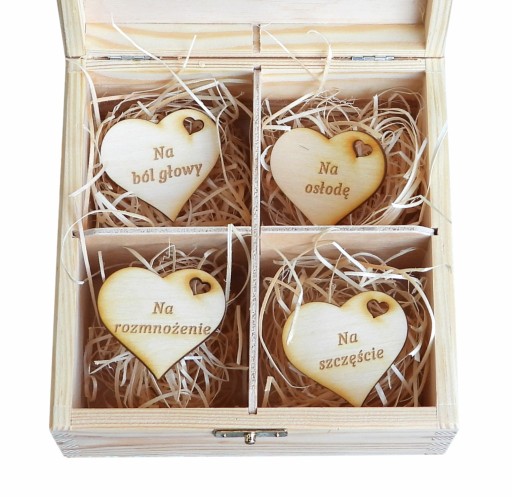 Niezbędnik małżeński - piękne pudełko z grawerem, wypełnione wełną drzewną. Zaskocz młodych małżonków i podaruj im elegancki, praktyczny prezent.