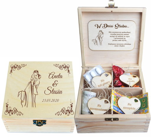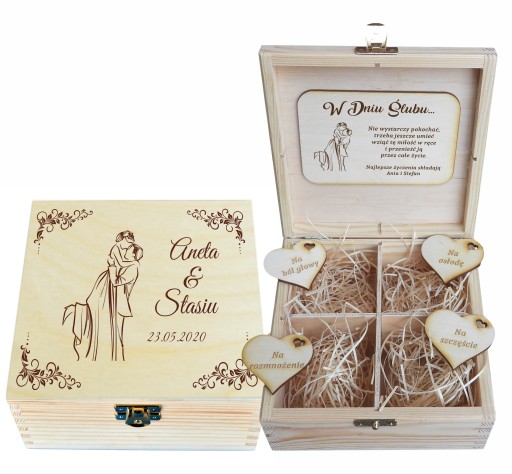 Pudełko jest idealnym podarunkiem i pamiątką z okazji ślubu.