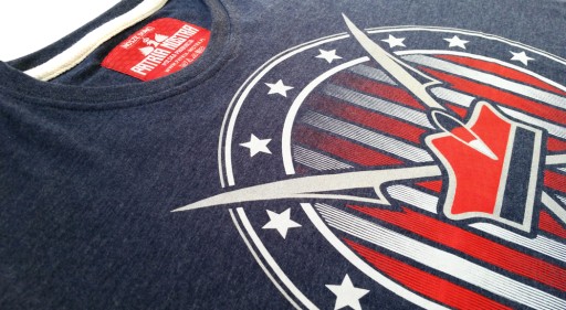 Wybór hitowego - jeansowego - koloru materiału w naszej opinii idealnie komponuje się z barwami odznaki Dywizjonu 303. Oprócz naszych stałych dodatków w postaci firmowych żakardów oraz naszywki z logo marki, koszulkę urozmaica biała tasiemka wzmacniająca kołnierzyk z również białą nicią przeszycia. T-shirt posiada zbieżny ze swoim kolorem potnik. Historyczne logo, które stanowi motyw przewodni zostało przetworzone w naszej własnej, nowoczesnej interpretacji graficznej. Wybrane elementy zostały wykonane efektowną, brokatową farbą w kolorze srebrnym