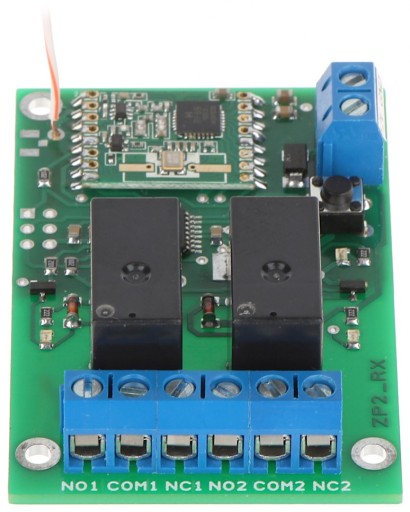 System bezprzewodowy ZP-2 umożliwia bezprzewodowe sterowanie urządzeniami, wykorzystując pasmo ISM 433 MHz. Zdalne sterowanie obejmuje 2 osobne kanały. Każdy kanał sterowany jest jednym, dedykowanym wejściem w nadajniku. Od strony odbiornika, do każdego kanału przypisany jest osobny przekaźnik NO/NC. Maksymalne obciążenie każdego z przekaźników to 2300 W (AC), przez co system sprawdzi się w bardzo szerokiej gamie zastosowań.