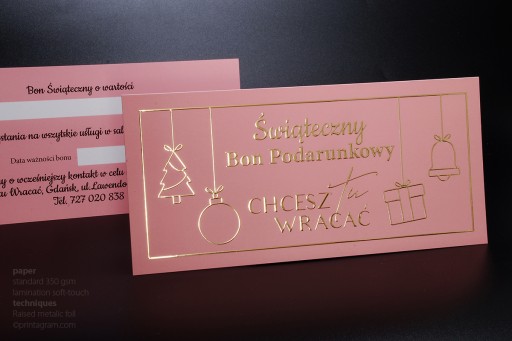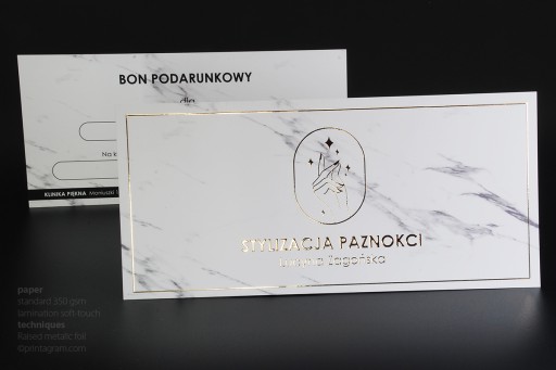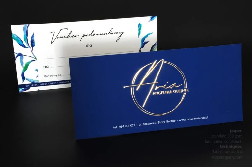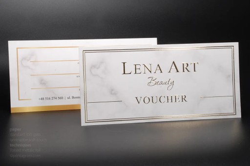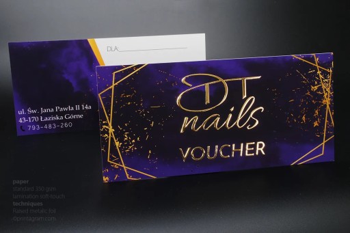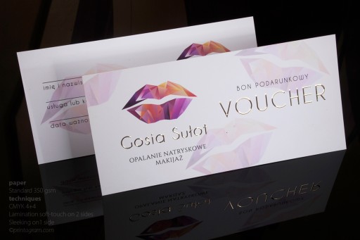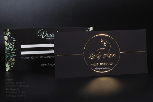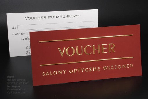 Vouchery pełnokolorowe pokrywane jednostronnie złotą lub srebrną folią 3D