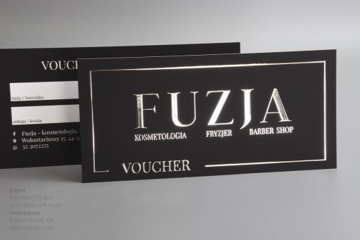 Vouchery z efektem metalicznej wypukłości. Dotykając taki bon ma się wrażenie zastygniętego płynnego metalu. Jaskrawe metaliczne kolory wyraźnie odbijają światło i już z daleka dają wrażenie wypukłości i wyjątkowości.