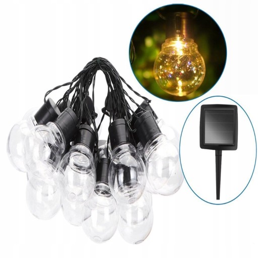 - Girlanda zasilana jest energią słoneczną i ma wbudowany panel solarny.