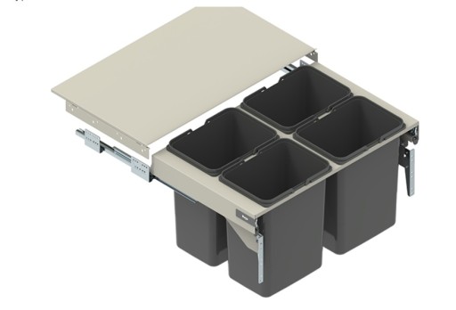 - składa się z 4 pojemników na śmieci o pojemności 15 litrów
