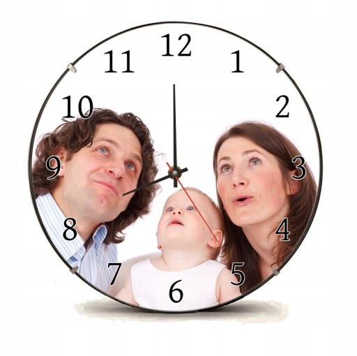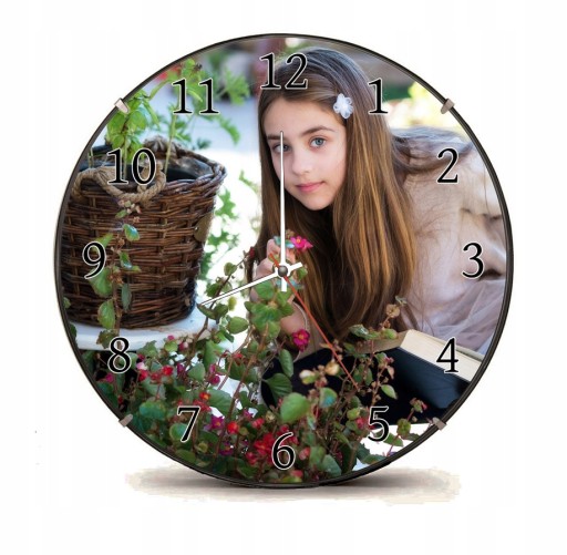 Zegar ścienny z Twoim zdjęciem. Jest to idealny prezent na Dzień Kobiet, Walentynki, Dzień Babci i Dziadka, Dzień Dziecka i inne okazje.