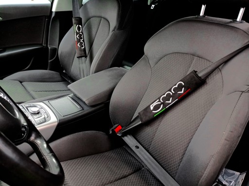 Poniżej przedstawiamy nakładki na pasy wykonane z pięknego i wytrwałego materiału jakim jest alcantara. Nakładki świetnie prezentują się w samochodzie, a stylowy i niepowtarzalny haft dodaje im charakteru. Nakładki są dopasowane do pasów, a pod spodem znajduje się gąbka, która zapobiega przesuwaniu się w górę i w dół. Montaż jest banalnie prosty - zamontowaliśmy rzep, który wystarczy odpiąć i zamontować produkt na pasach. Materiał jest miękki i przyjemny w dotyku dzięki czemu pasy przyjemnie leżą na ramieniu. Jeśli macie Państwo problem z tym, że pas gryzie w szyje i jest niewygodny, a regulacja w samochodzie już nie wystarcza, to nasze nakładki będą idealnym rozwiązaniem tego problemu. Dodatkowo śliczny haft na nich wniesie do wnętrza samochodu delikatną dawkę ożywienia.