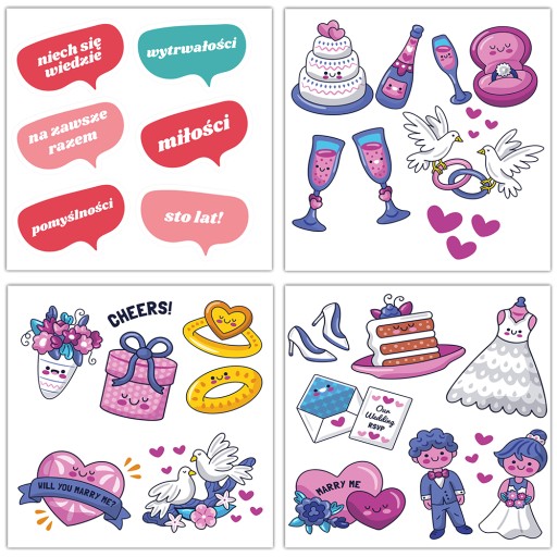 Naklejki ślubne do księgi gości weselnych dodadzą radosnej atmosfery. Naklejki to bardzo fajny sposób ma urozmaicenie wpisów Waszych gości i jednocześnie świetna zabawa.