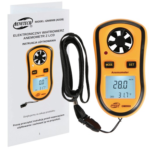 Prezentowany wiatromierz, anemometr to bardzo praktyczne urządzenie do pomiaru natężenia i siły wiatru oraz ruchu gazów.