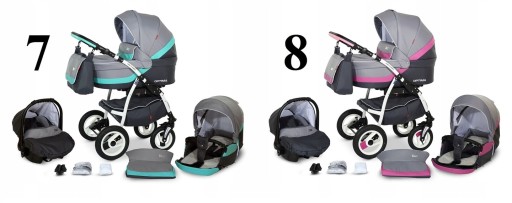 Wózek dostępny jest w dziesięciu wersjach kolorystycznych, po zakupie prosimy o informację który kolor wózka Państwo wybrali (najlepiej w formularzu Allegro w okienku "wiadomość do sprzedającego" lub mailem zaraz po zakupie). Oznaczenia kolorów poniżej: