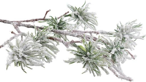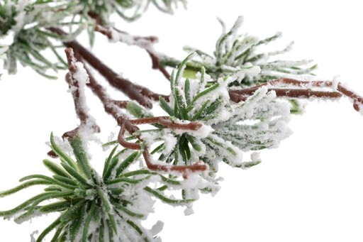 - Dekoracyjna gałązka pokryta sztucznym śniegiem.