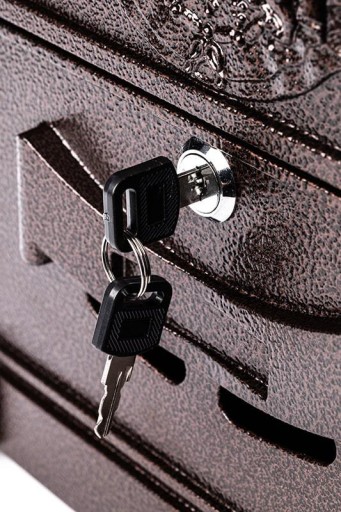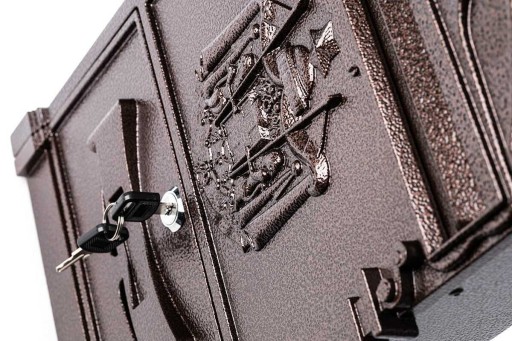 Wielofunkcyjna skrzynka pocztowa o wymiarach 412 x 253 x 87 mm. Korpus wykonany z blachy stalowej o wysokiej odporności na korozję, malowanej proszkowo w kolorze miedzianym, natomiast front ze zdobionego aluminium. Produkt łączy w sobie wysoką funkcjonalność, trwałość oraz elegancki wygląd.