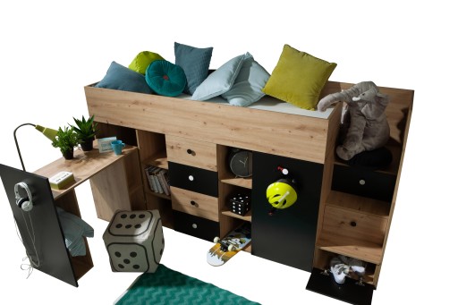 Двухъярусная кровать в мезонине и письменный стол SMART 3