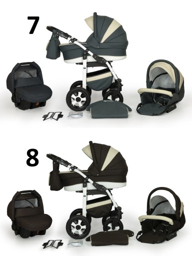 Wózek dostępny jest w dziesięciu wersjach kolorystycznych, po zakupie prosimy o informację który kolor wózka Państwo wybrali (najlepiej w formularzu Allegro w okienku "wiadomość do sprzedającego" lub mailem zaraz po zakupie). Oznaczenia kolorów poniżej: