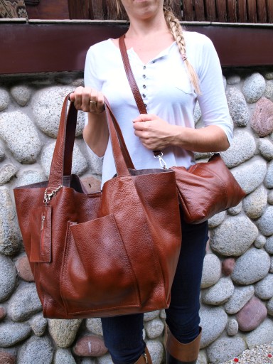 Dodatkowo do torebki dołączona jest skórzana, saszetka wraz z regulowanym, odpinany paskiem, dzięki czemu można ją również nosić jako listonoszkę-zapinana na suwak