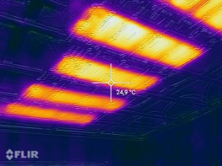 Pełne raporty termowizyjne dostępne są na stronie Termolock(.) pl zakładka "Specyfikacja/raporty termowizyjne" . Tutaj prezentujemy fragment, ponieważ Allegro nie zezwala na umieszczanie zdjęć z napisami. Przegroda zapewnia zupełnym bark mostków termicznych. Dodatkowo , co jest nie spotykane przy innych rodzajach izolacji takich jak wełny, piany czy celulozy - punkty pomiaru temperatury na płycie KG są wyższe nawet o 2 st.C względem temperatury powietrza w pomieszczeniu. Tak właśnie działają maty Termolock, wykorzystujące odbicie promieniowania cieplnego od folii alu
