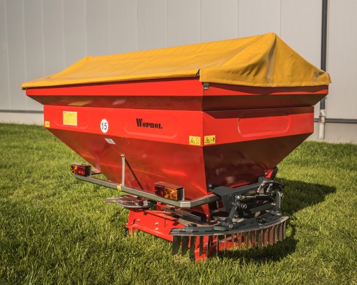 Rozsiewacz nawozów JUNIOR II przeznaczony jest do równomiernego rozsiania nawozu granulowanego na zadaną szerokość roboczą. Mocowany na trzypunktowym układzie podnośnika hydraulicznego ciągnika. Maszyna ta wyposażona jest w dwie tarczę wysiewająca. Konstrukcja wykonana jest z metalu pokrytego wytrzymałą farbą, cały mechanizm wysiewający (talerz, łopatki, osłona) wykonany jest ze stali nierdzewnej kwasoodpornej. W standardzie sterowanie hydrauliczne. Otwieranie za pomocą siłownika (prawa-lewa strona) oraz oświetlenie drogowe.