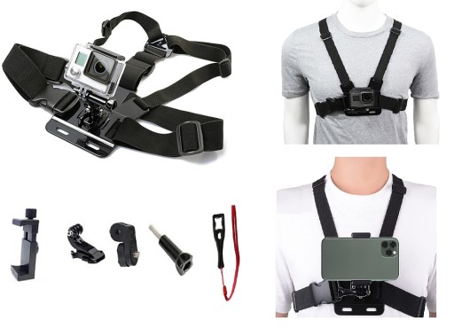3w1 SZELKI UCHWYT NA KLATKĘ CHEST MOUNTDO TELEFONU lub KAMERY SPORTOWEJ APARATU