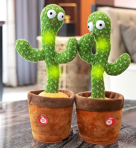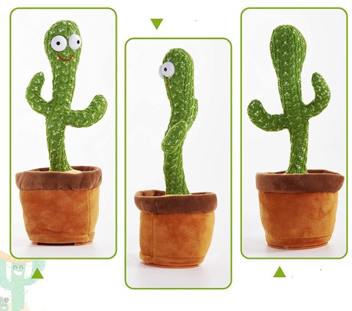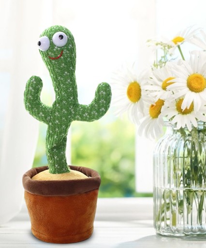 - Kaktus śpiewa, tańczy w zabawny sposób i powtarza słowa. Tułów świeci na różne kolory podczas tańca.