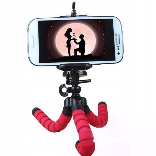 Nowy, funkcjonalny mini statyw/uchwyt na telefon komórkowy, aparat fotograficzny, kamerę. Dzięki swoim giętkim, a zarazem sztywnym nogom można go stabilnie zamocować, praktycznie na każdym elemencie otoczenia.