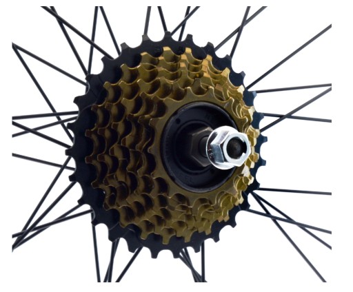 - Wolnobieg nakręcany 7 rzędowy - bardzo dobrej jakości zamiennik wolnobiegu Shimano + łańcuch 7 rzędowy De one ze spinką