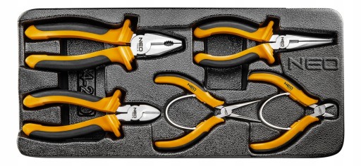 Zestaw 5 szt. szczypiec NEO (nr ref. 84-230), wykonane zgodnie z normami DIN. Szczęki z wysokiej jakości stali hartowane indukcyjnie (55-60 HRC) zapewniają skuteczne cięcie i kształtowanie twardych drutów. Dwumateriałowa, ergonomiczna rękojeść podnosi komfort użytkowania. Narzędzia dostarczane są w praktycznej wytłoczce z tworzywa, pasującej do szuflad szafek narzędziowych NEO 84-221 i 84-222. Jakość narzędzia potwierdzona certyfikatem TÜV i 25-letnią gwarancją producenta. Marka NEO spełnia oczekiwania profesjonalistów.
