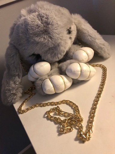 Po przepięciu łańcuszka torebka zmienia się w plecaczek.