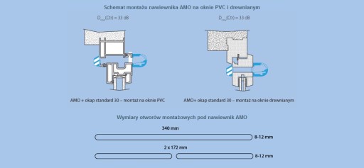 Nawiewniki można zamontować w oknach nowych, jak i już istniejących. Prawidłowo zamontowany nawiewnik AMO posiada wylot powietrza skierowany do góry. Nawiewniki montuje się w górnej części okien dzięki czemu powietrze z zewnątrz nie jest kierowane bezpośrednio na użytkownika i tym samym unika się nieprzyjemnego zjawiska przeciągu. W przypadku okien PCV nawiewniki montuje się na przyldze okiennej bez uszkodzenia wzmocnienia stalowego okna