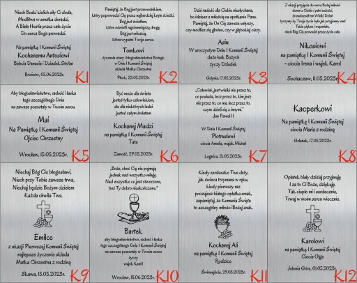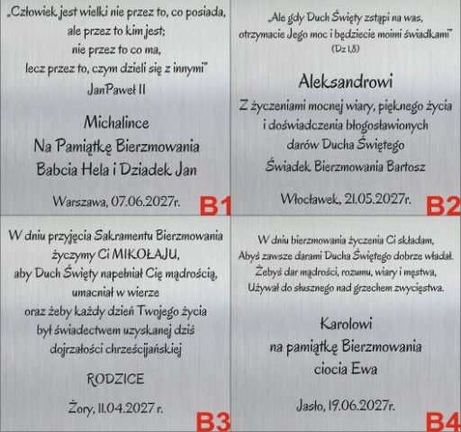 Zdjęcia przykładowych grawerów mają charakter poglądowy. Odcień i wielkość wygrawerowanego tekstu może się różnić w zależności od obrazka.