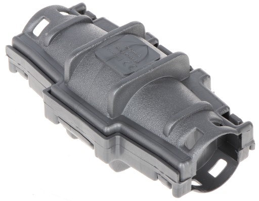 Mufa przelotowa wypełniona żelem uszczelniającym. Produkt spełnia klasę szczelności IP68. Puszka doskonale sprawdza się w miejscach o dużym zawilgoceniu oraz pod ziemią (na przykład w elektrycznych instalacjach ogrodowych).