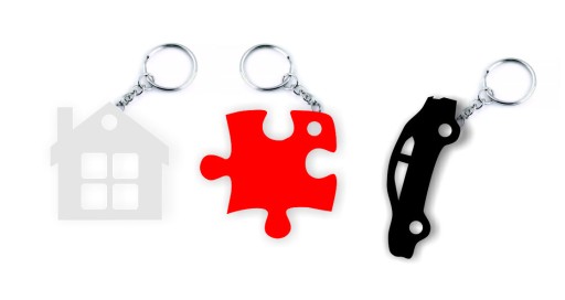 - formatki w rozmiarze 5cm na 5cm wraz z usługą darmową wycięcia jednego dowolnego znaku (bezbarwnego domku, czerwonego puzzla lub czarnego samochodu) zgodne z wzorem zaproponowanym przez nas poniżej.