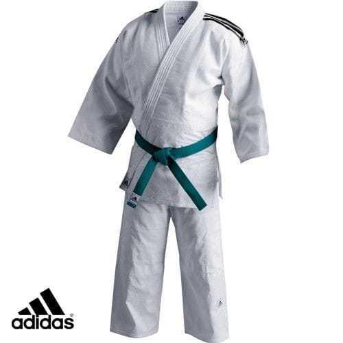 Kimono występuje w kolorze białym i niebieskim. Na ramionach gładkie naszywki z białymi paskami i znaczkiem adidas. Trzy paski podnoszą prestiż i estetyczny wygląd kimona. Na dole kołnierza gładka naszywka z logo adidas. W skład kompletu wchodzi bluza, spodnie na gumce oraz biały pas.