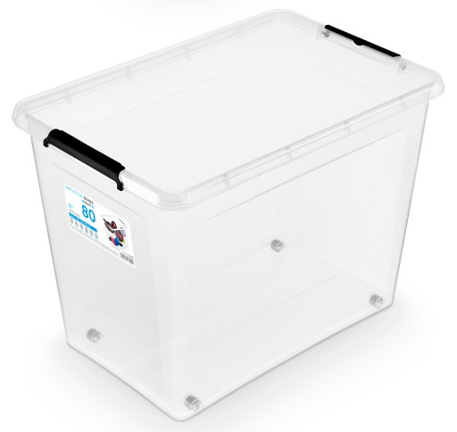 POJEMNIK PUDŁO PUDEŁKO PLASTIKOWY Z POKRYWĄ PRZEZROCZYSTY ORGANIZER 80 L