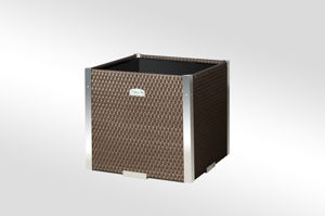 Donica wykonana z wyplatanego technorattanu. Wnętrze wykonane z blachy ocynkowanej. Listwy ozdobne wykonane z polerowanego aluminium.