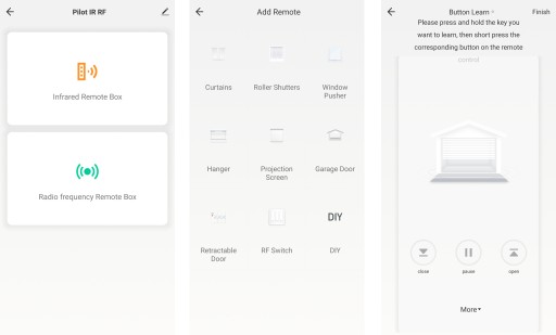 Jest to pilot, który może może obsługiwać wszystkie urządzenia sterowane za pomocą IR (podczerwień) lub RF 433.92 MHz Kody stałe EV1527 z jednego urządzenia typu smartfon z darmowej aplikacji TUYA lub Smart Life. Można zdalnie włączać i wyłączać urządzenia sterowane poprzez IR/RF z dowolnego miejsca. Można takie ustawić sterowanie głosowe dzięki Google Home i Amazon Alexa Przewaga tego modelu to bardzo popularna aplikacja TUYA.