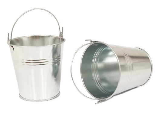 Śliczna duża metalowa DONICZKA WIADERKO w kolorze srebrnym