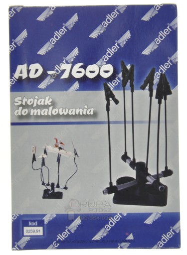 Stojak AD-7600 wyposażony jest w 6 klipsów umieszczonych na giętkich pręcikach. Posiada dwa ruchome ramiona i magnesy w podstawie. Może być zamocowany na każdej płaskiej powierzchni na przykład do blatu lub stołu, a dzięki magnesom także na płaszczyznach pochyłych. Znacznie ułatwia malowanie niewielkich przedmiotów, np. modeli aerografami