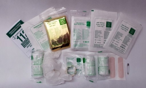Apteczka pierwszej pomocy wykonana z tkaniny wodoodpornej zawiera: