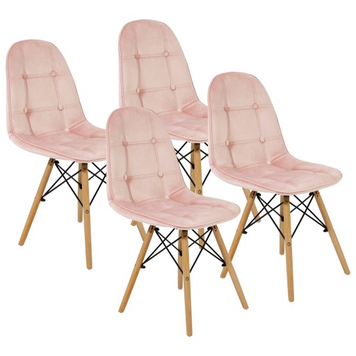 Krzesła tapicerowane stworzone z myślą o prostocie stylu skandynawskiego, to meble pasujące do każdego pomieszczenia – pięknie wkomponują się w przestrzeń pokoju dziennego, jadalni, pomieszczenia biurowego lub nawet sali konferencyjnej. Sprawdzą się między innymi we wnętrzach urządzonych w stylu skandynawskim, loftowym czy glamour. Posiadają wyprofilowane, miękkie oparcia oraz siedziska, co zapewnia bardzo wysoki poziom komfortu, nawet w czasie wielogodzinnego użytkowania. Część użytkowa krzeseł wykonana została z polipropylenowego rdzenia oraz warstwy gęstej gąbki, pokryta wysokiej jakości, aksamitną tkaniną welurową. Welurowe obszycia krzeseł w połączeniu z podwójnymi przeszyciami oraz guzikami tapicerskimi nadają meblom elegancji oraz wyjątkowego charakteru.