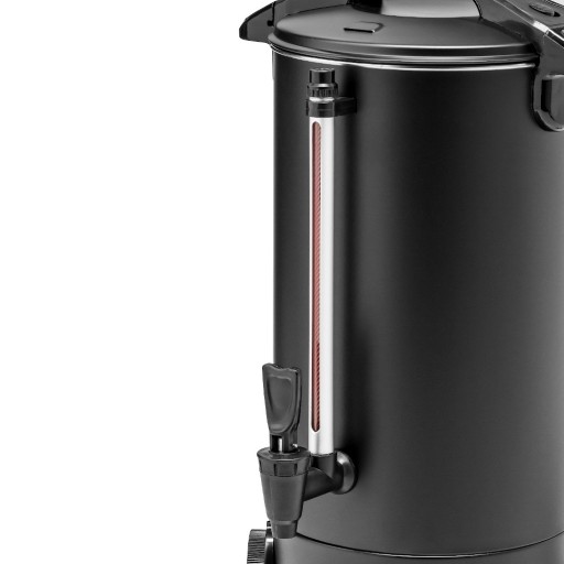 Zaparzacz do kawy o pojemności całkowitej 7 l (użytkowej - 6 l). Elegancki kolor matowej czerni. Podwójne ścianki wspomagają utrzymanie ciepła, tym samym wpływając na zmniejszenie poboru energii elektrycznej. Dodatkowo wpływają na bezpieczeństwo użytkowania ze względu na znacznie niższą temperaturę obudowy. Zewnętrzna ścianka wykonana ze stali malowanej na matowy czarny kolor, wewnętrzna z wysokogatunkowej stali nierdzewnej.