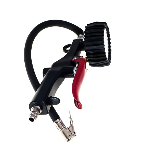 Pistolet cechuje wysoka jakość wykonania. Wyposażony w precyzyjny manometr ze skalami BAR, PSI, obudowany gumą co zabezpiecza go przed uszkodzeniem. Całość konstrukcji jest trwała oraz wytrzymała na uszkodzenia. W zasięgu kciuka znajduje się specjalny zawór, który pozwala na łatwą regulację ilości powietrza w oponie. Idealny do każdego warsztatu, jest także polecany do zakładów wulkanizacyjnych
