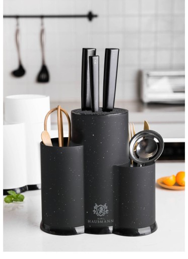 БЛОК НОЖЕЙ ТРУБКА 22 СМ ЧЕРНЫЙ МРАМОР 3В1 ВСТАВКА ИЗ ПОЛИПРОПИЛЕНОВЫХ РЕЗЬБ